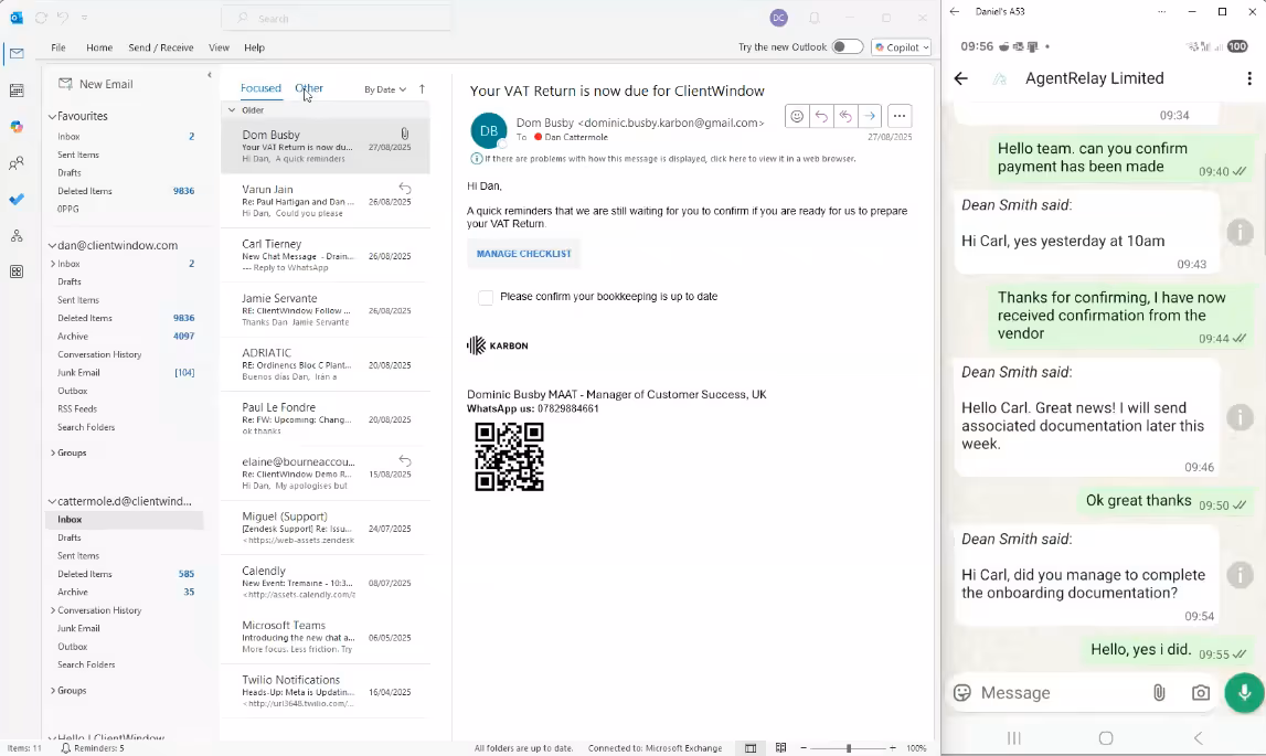 Seamlessly connecting clients who prefer WhatsApp with businesses who use Email & Microsoft Teams